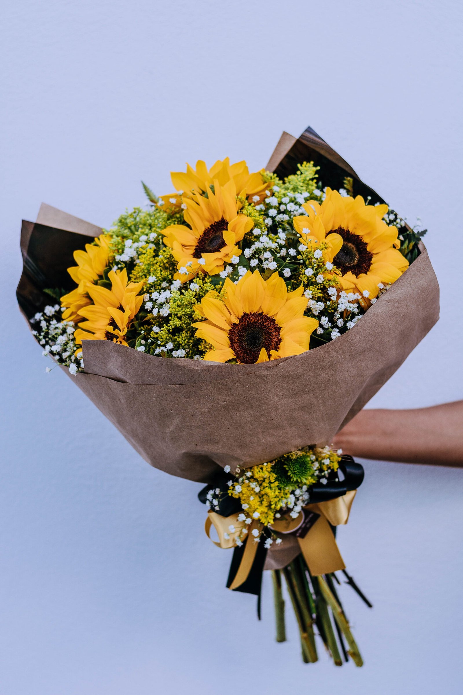 Um exuberante buquê com 6 girassóis.