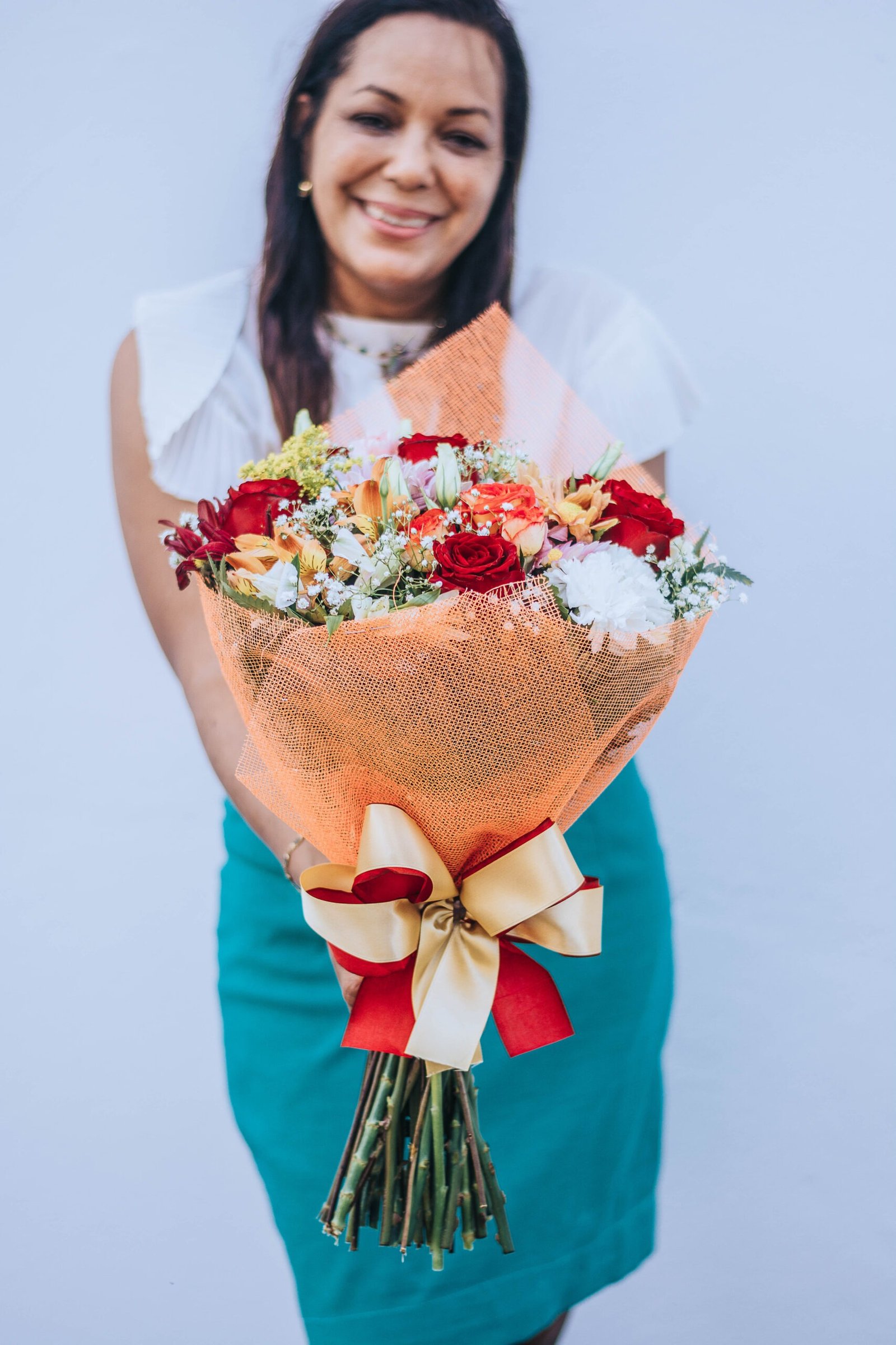 Buquê com 6 rosas e mix de flores para alegrar o dia de quem você ama.