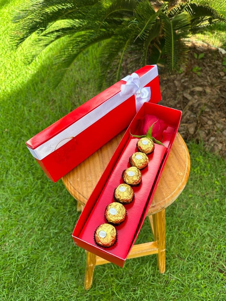 Linda caixa com 6 bombons Ferrero Rocher + 1 rosa.