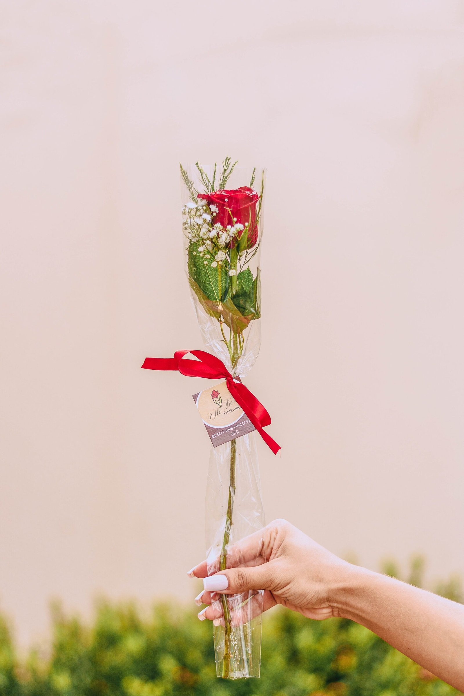 Rosa no papel transparente com laço